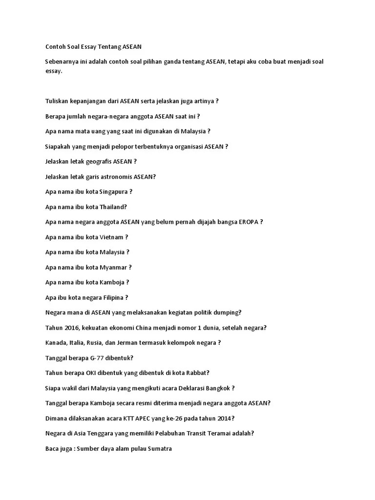 Soal Ips Kelas 6 Tentang Asean : Contoh Soal Essay Tentang Asean Terbaru Penulis Cilik / Sore itu, alan sedang membaca berita tentang sebuah sekolah untuk anak jalanan.